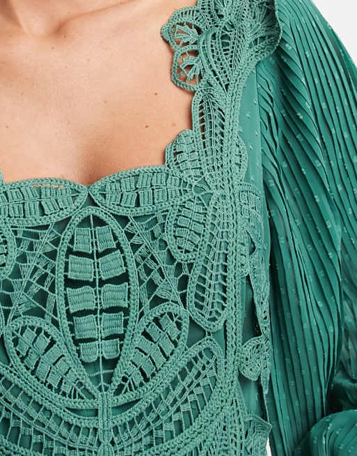 ASOS DESIGN square neck pleated dobby embroidery maxi dress in dark green ASOS Very well made.