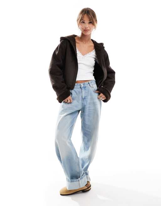 ASOS DESIGN hooded shearling jacket in brown ASOS Very well made.