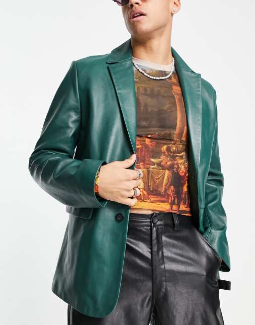 ASOS DESIGN real leather blazer in green Very well made.