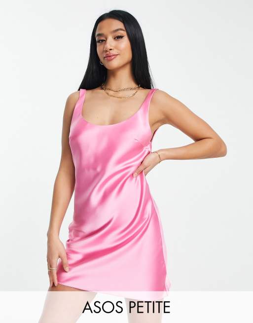 ASOS DESIGN Petite Vestito sottoveste corto in raso con scollo rotondo rosa ASOS Very well made.