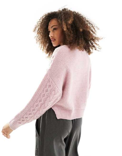 ASOS DESIGN boxy crew neck sweater with balloon sleeve in pink Very well made.