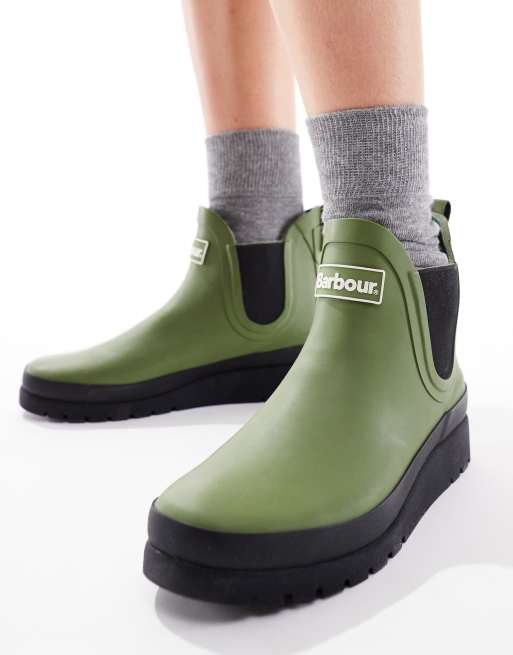 Barbour x ASOS Clifton wedge chelsea rain boots in pesto green ASOS Very well made.