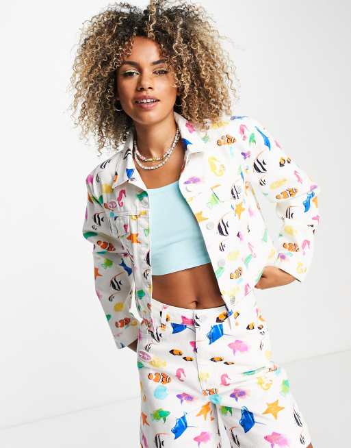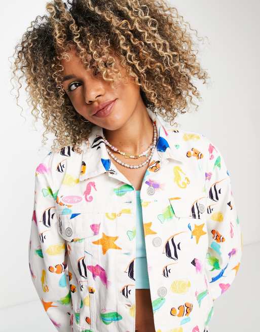 Easy Tiger crop denim jacket in rainbow fish denim part of a set Very well made.