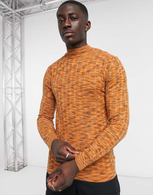 ASOS DESIGN knitted muscle fit cable turtleneck sweater in space dye yarn ASOS Very well made.