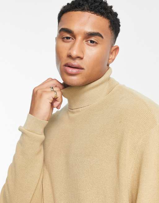 ASOS DESIGN lightweight oversized ribbed turtle neck sweater in stone ASOS Very well made.