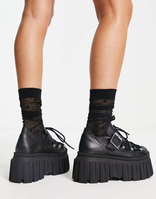 ASOS DESIGN Meg premium leather chunky flat shoes in black Very well made.