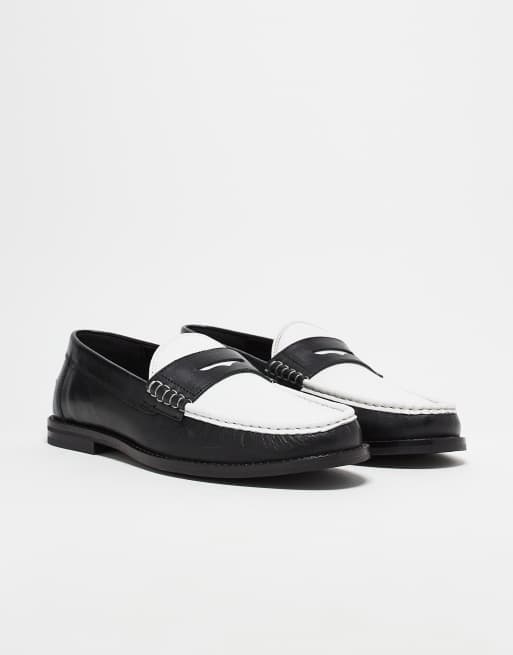 ASOS DESIGN penny loafers in black and white leather Very well made.