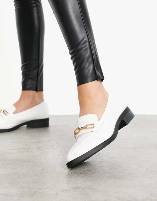 Glamorous Wide Fit loafers with gold trim in white Very well made.