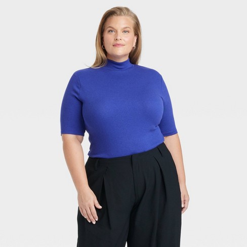 Women s Ribbed Short Sleeve Mock Turtleneck T shirt A New Day Blue 1x Target Very well made.