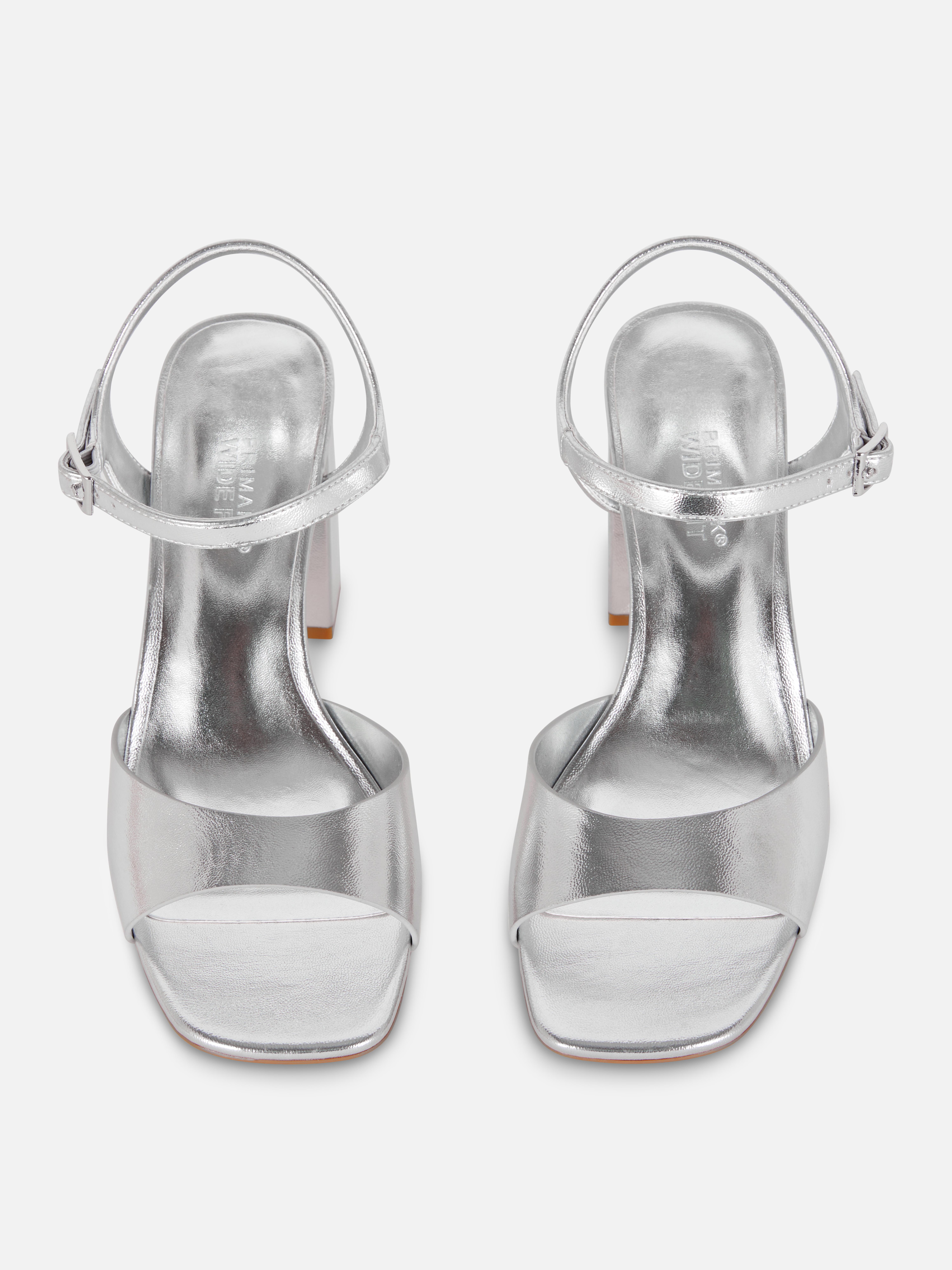 Womens Silver Wide Fit Curved Strap Block Heels Primark Very well made.