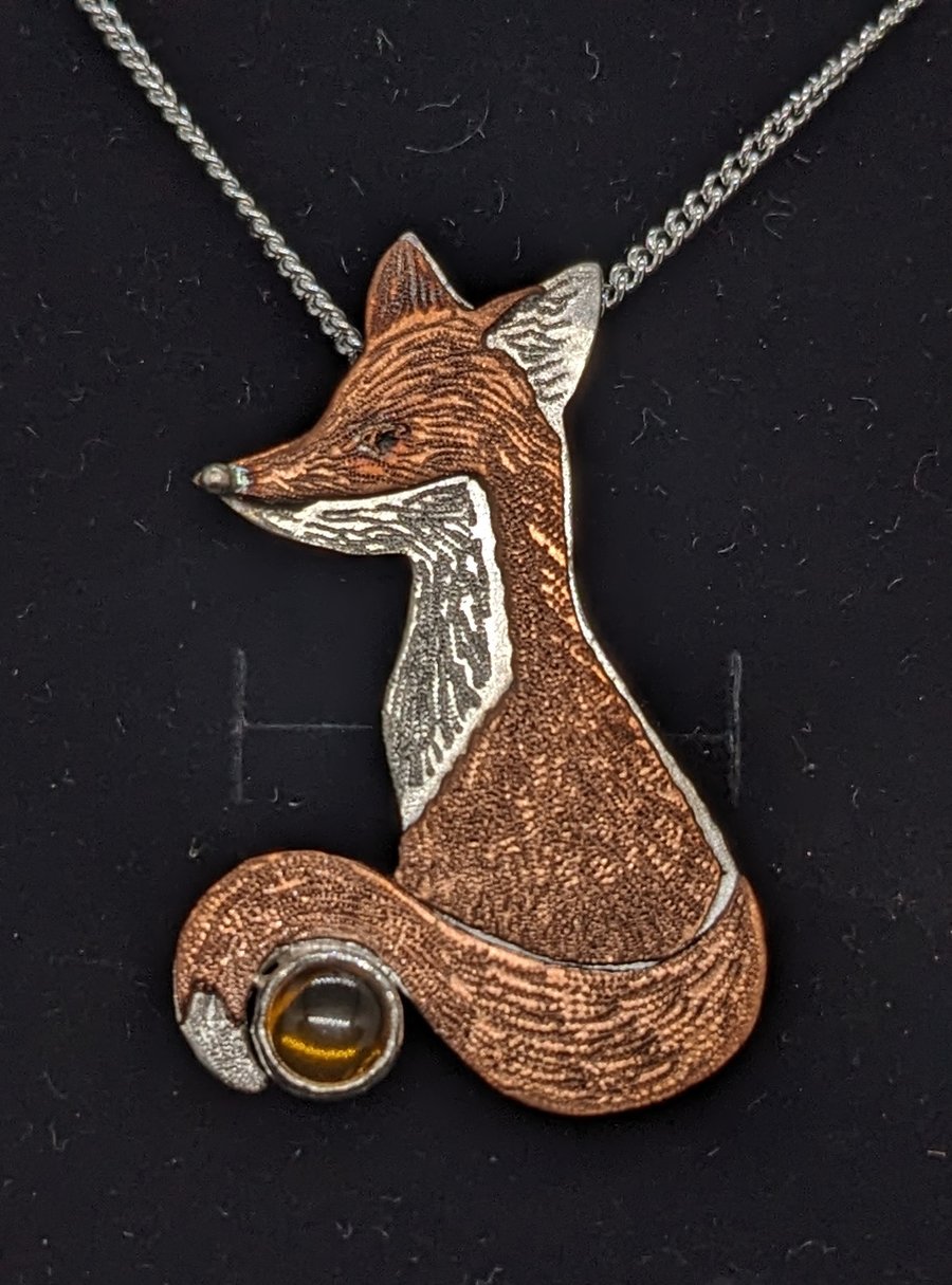 Silver fox pendant with amber Wildlife jewelle. Folksy Very well made.
