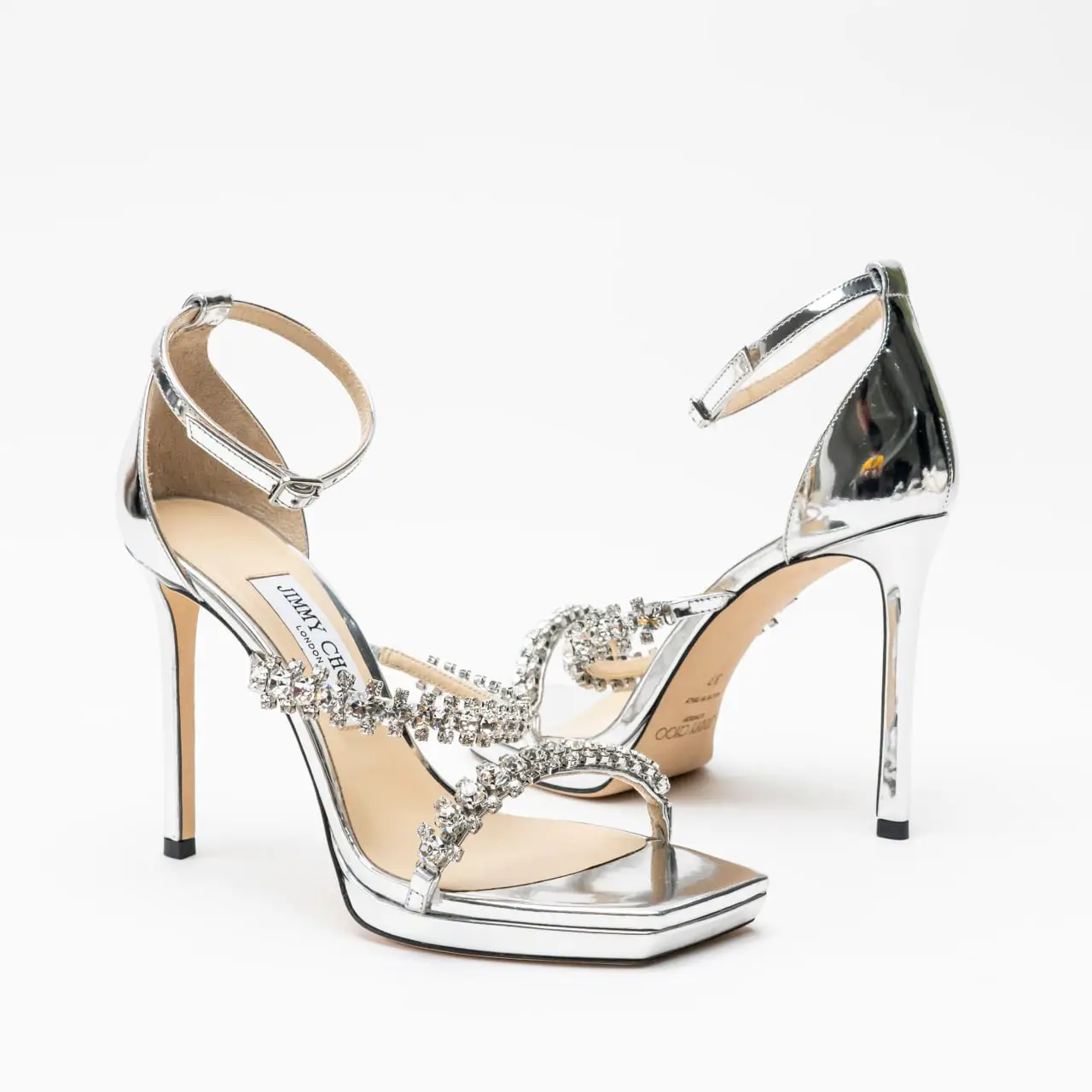 Jimmy Choo Womens Saeda 100 Embellished High Heel Silver Crystal 6.5 US 36.5 eBay Very well made.