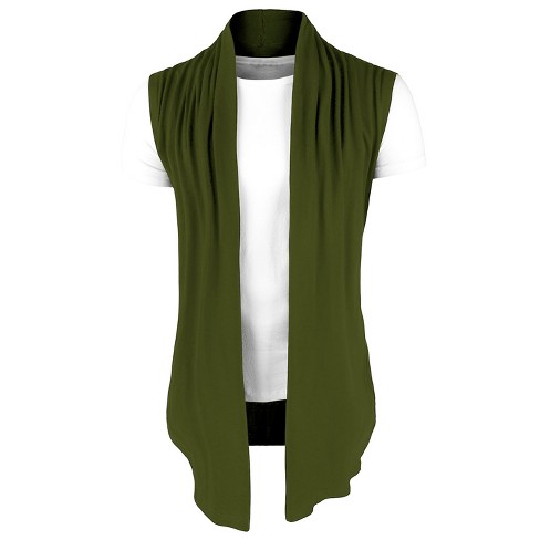 Lars Amadeus Men s Casual Open Front Sleeveless Irregular Hem Cardigan Vest Green X Large Target Very well made.