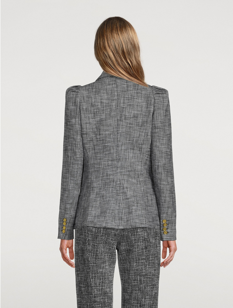 Smythe SS 18 Box Pleat Black Luster Linen Puff Sleeve Blazer Blogger Armoire Very well made.