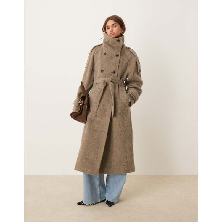 ASOS DESIGN brushed funnel neck trench coat in mushroom ASOS Very well made.