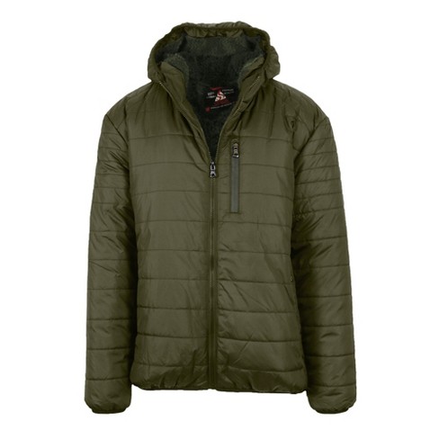 Spire By Galaxy Men s Faux Shearling Lined Hooded Puffer Jacket Olive Large Target Very well made.