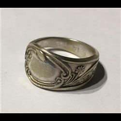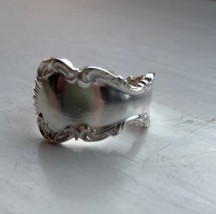 Ornate solid silver spoon handle ring UK size S. Folksy Very well made.
