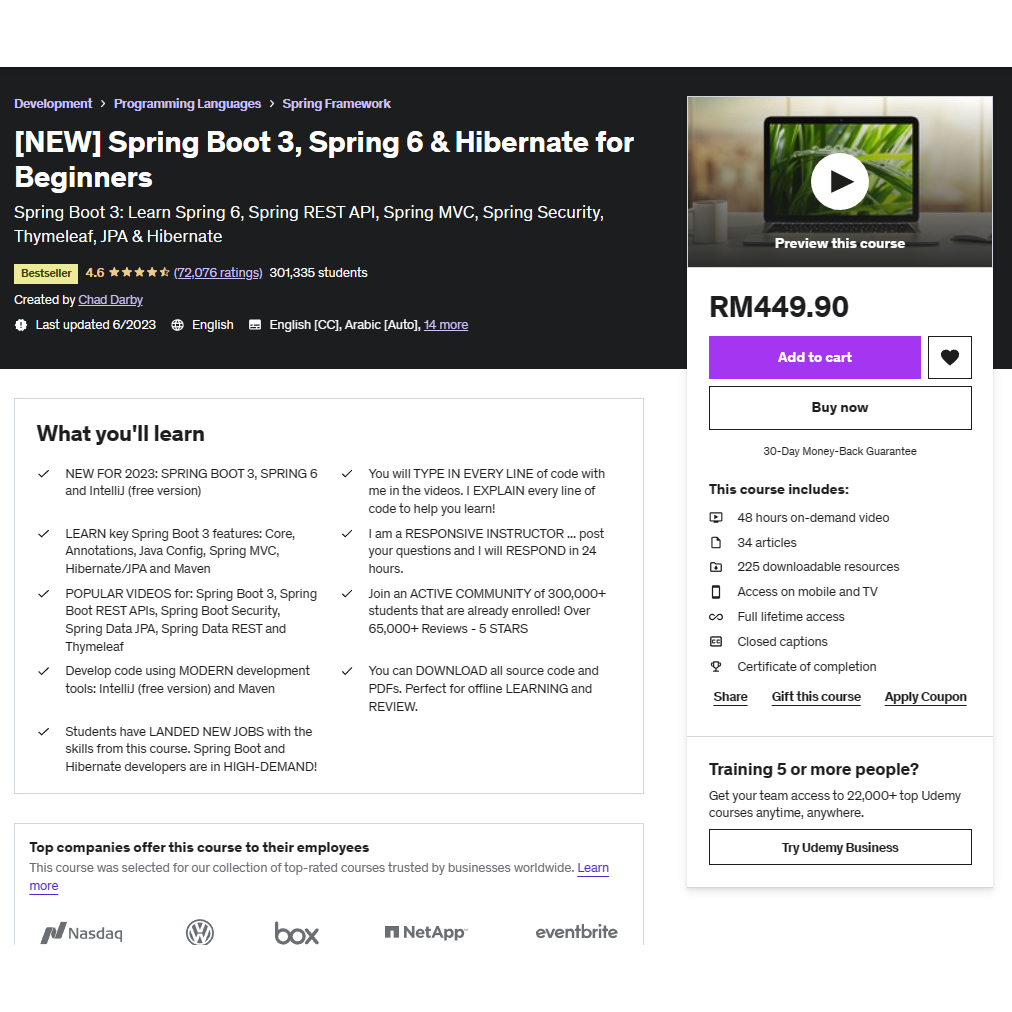 COURSE Udemy NEW Spring Boot 3 Spring 6 Hibernate for Beginners Shopee Malaysia Very well made.