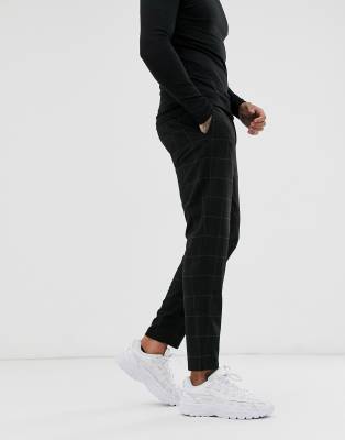 Bershka skinny cropped trousers in light black check ASOS Very well made.