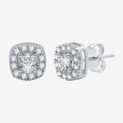 Square Blue Sapphire Cubic Zirconia Halo Sterling Silver Stud Earrings Very well made.