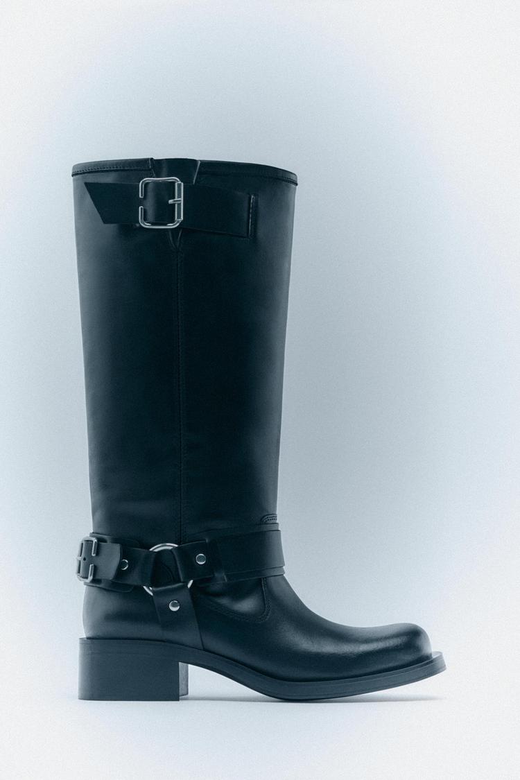 STIVALI AL GINOCCHIO BIKER IN PELLE CON FIBBIE Nero ZARA Italia Italy Very well made.