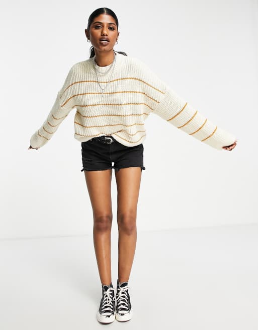 Vila long sleeve ribbed knit sweater in birch with gold stripes ASOS Very well made.