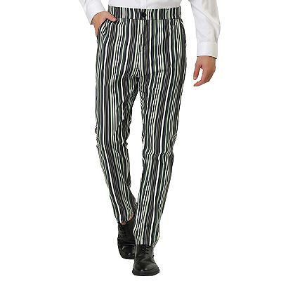 Men s Dress Striped Pants Slim Fit Flat Front Prom Pencil Trousers Very well made.
