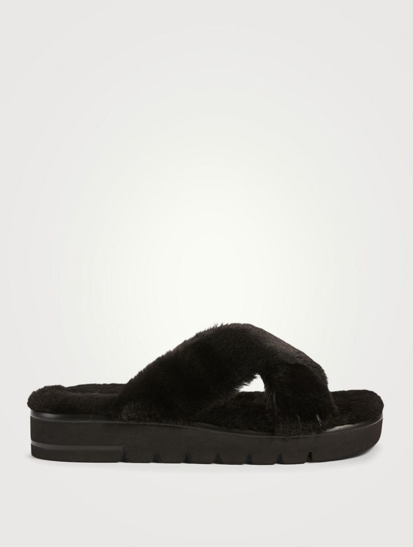 Stuart Weitzman Faux Fur Trim Leather Slides in Brown Lyst Very well made.