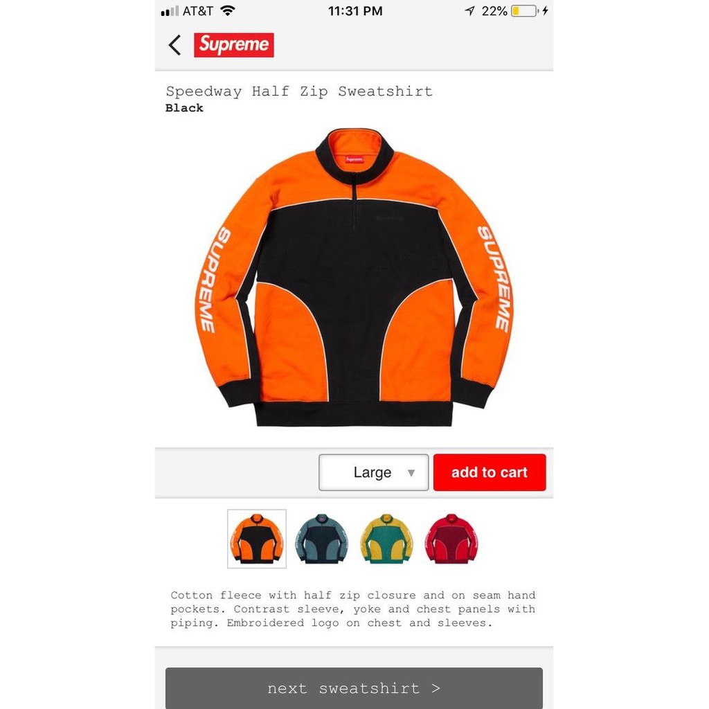 Supreme 18AW Speedway Half Zip Sweatshirt L Very well made.