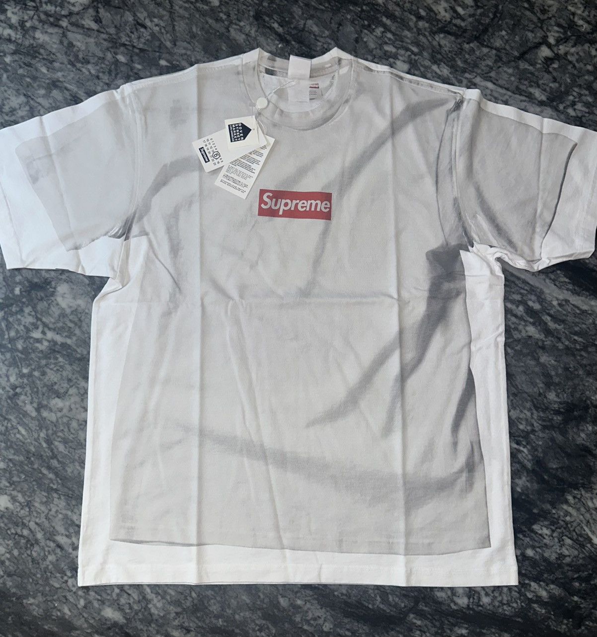 SUPREME SWAROVSKI BOX LOGO TEE WHITE SS19 Stay Fresh Very well made.