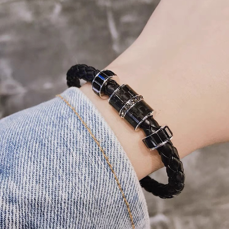 Ready Stock Swarovski Black Braided Leather Rope Bracelet Bracelet Couple Fashionable Classy Send Birthday Gift Very well made.