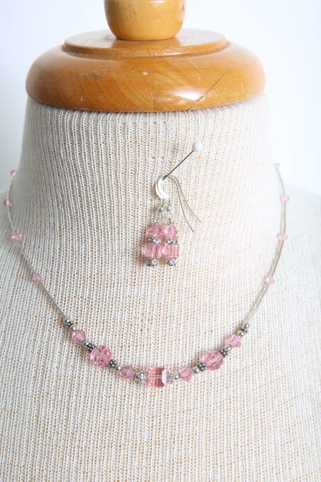 Pink Swarovski Crystals Necklace Earring Set Selected by Love Rocks Vintage Free People Very well made.