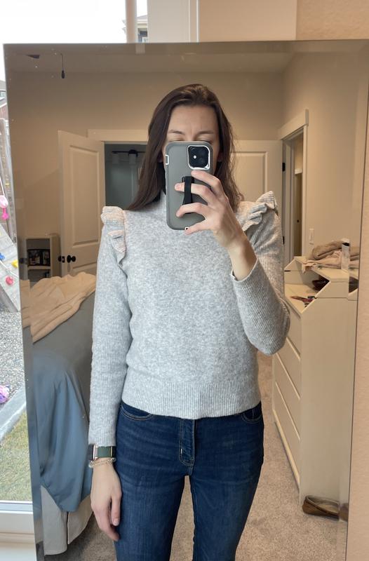 Shoulder Ruffle Mock Neck Sweater Very well made.
