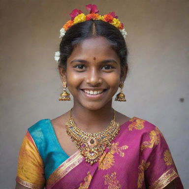 Vibrant and Proud Adorned Tamil Girl in Traditional Dress Very well made.