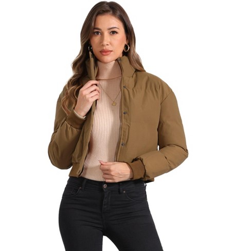 Inspire Chic Women s Winter Outwear Baggy Padded Cropped Bomber Jacket Brown Medium Target Very well made.