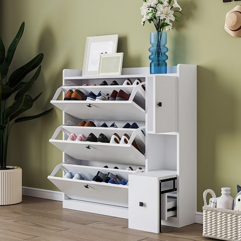 Shoe Cabinet With 3 Flip Drawers Free Standing Shoe Organizer With Pull down Seat Hidden Shoe Storage Cabinet For Hallway Living Room White Target Very well made.