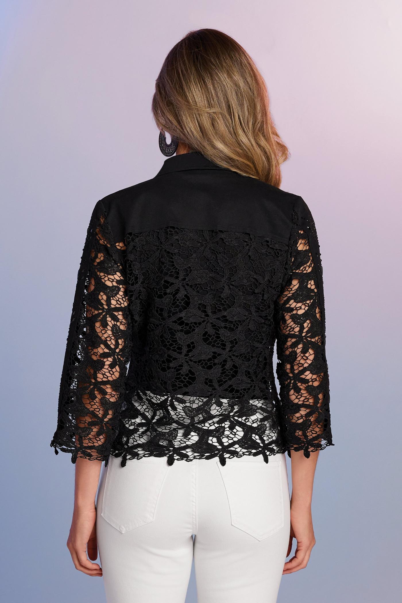 Embellished Lace Three Quarter Sleeve Denim Jacket Black Boston Proper Very well made.