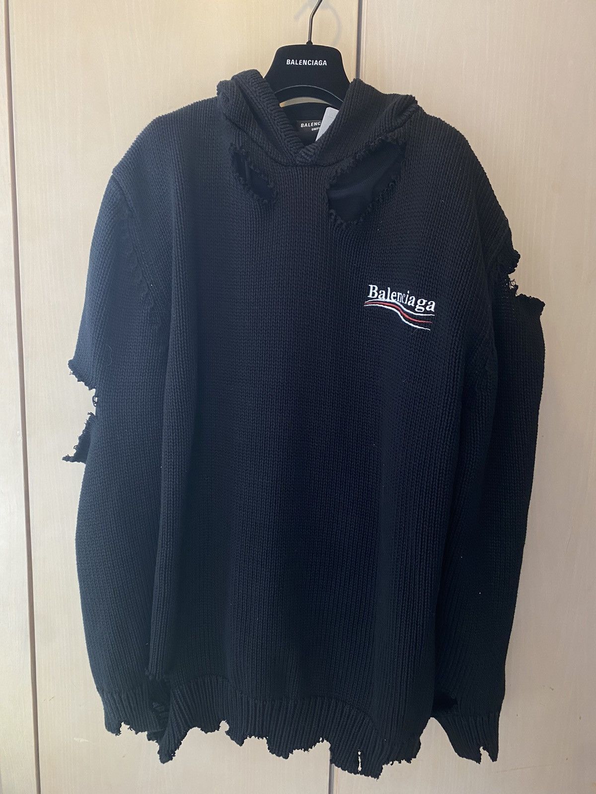 Balenciaga RARE Balenciaga political campaign destroyed knit hoodie Grailed Very well made.