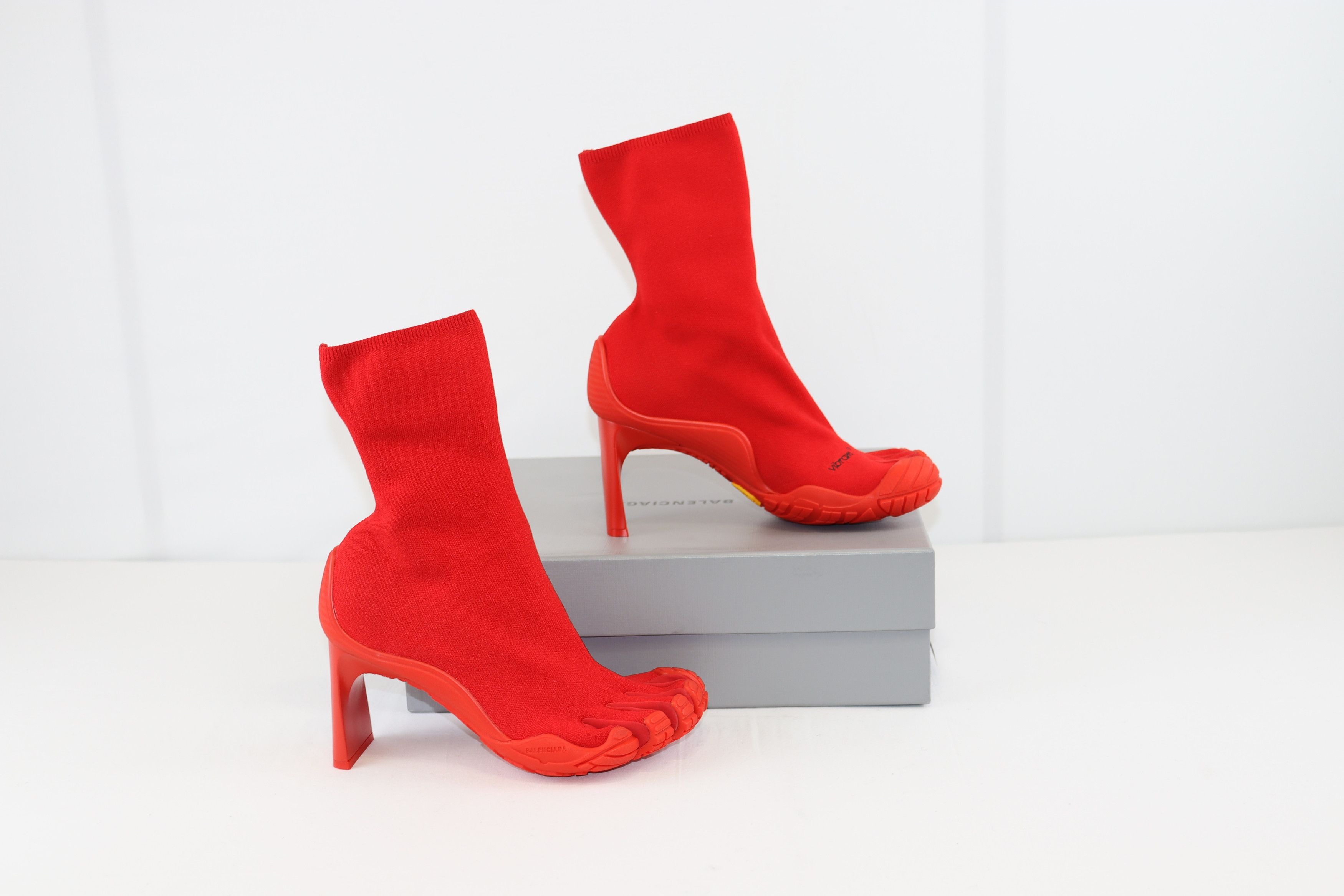 Balenciaga o1rshd1 Five Toe Monocolor Knit Heeled Toe Boots in Red TOP DRWR Very well made.