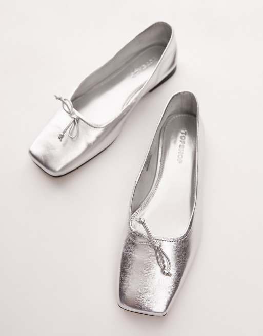Topshop Bethany leather square toe unlined ballerina shoes in silver ASOS Very well made.
