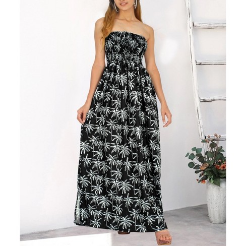 La Leela Women s Summer Boho A Line Slit Maxi Beach Dress Smocked Top Evening Long Strapless Tube Dresses For Women One Size Black Tree Target Very well made.