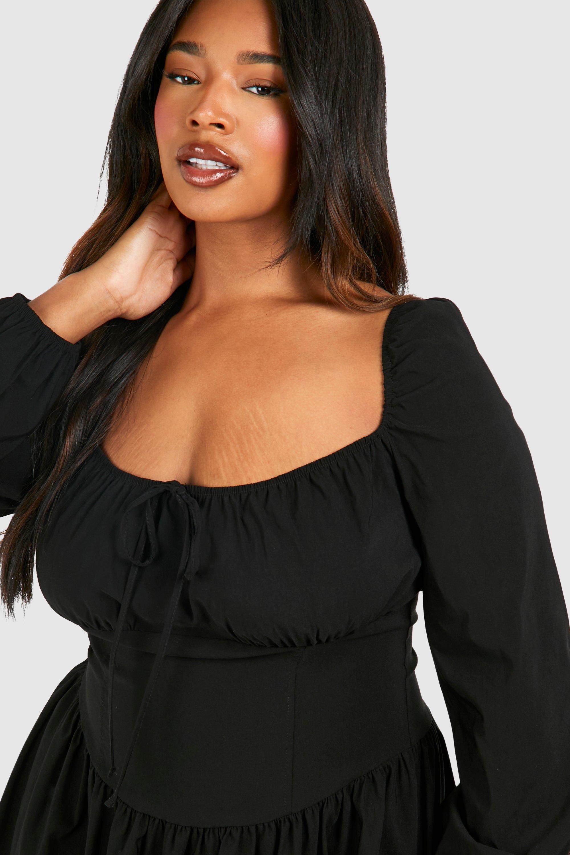 Boohoo Women s Plus Bengaline Milkmaid Corest Skater Dress Black Very well made.