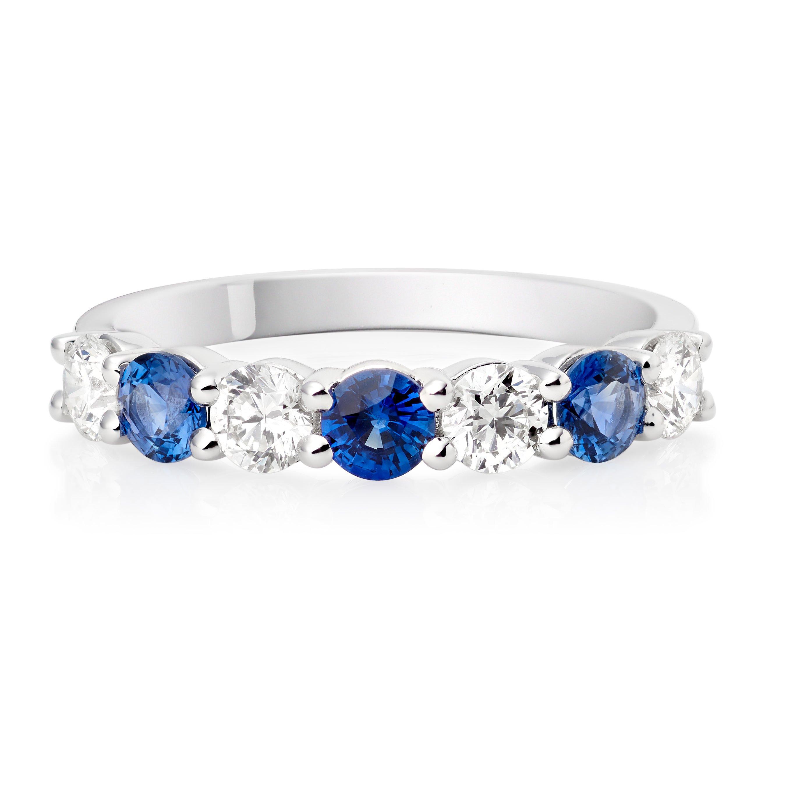 18ct White Gold Diamond Sapphire Half Eternity Ring Very well made.