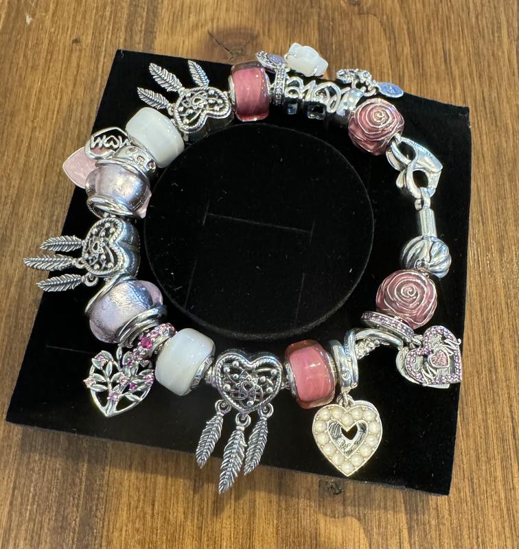 PANDORA SILVER CHARM BRACELET WITH PINK CRYSTAL HEART LOVE FAMILY CHARMS BOX eBay Very well made.