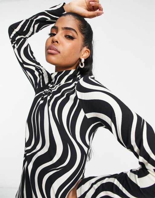 Other Stories jersey polo neck top in black and white wave print Very well made.