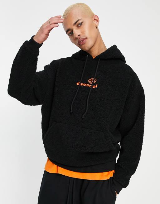 ASOS Daysocial oversized hoodie in fleece with logo chest embroidery in black Very well made.