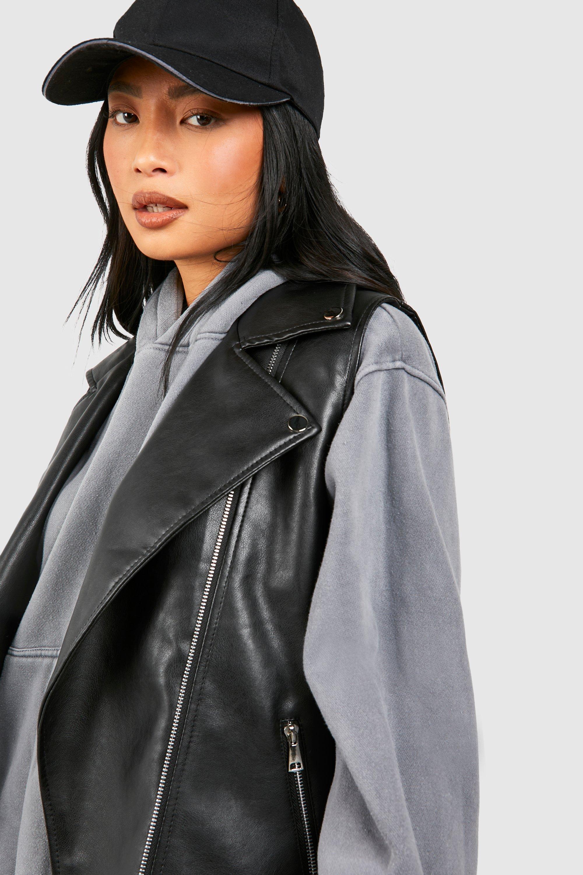 Boohoo Women s Petite Faux Leather Sleeveless Biker Jacket Black Very well made.