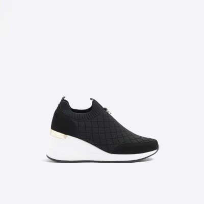 Black wide fit quilted wedge trainers River Island Very well made.