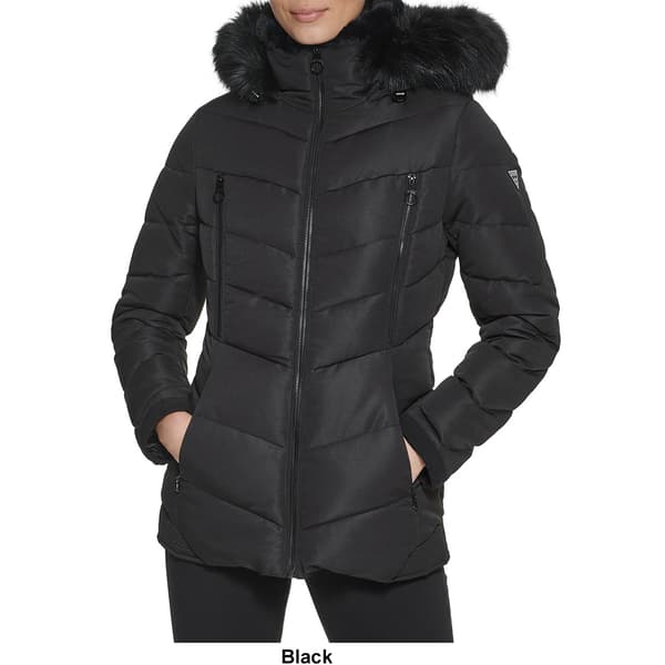Womens Guess Short Heavy Puffer Jacket w Faux Fur Trim Boscov s Very well made.