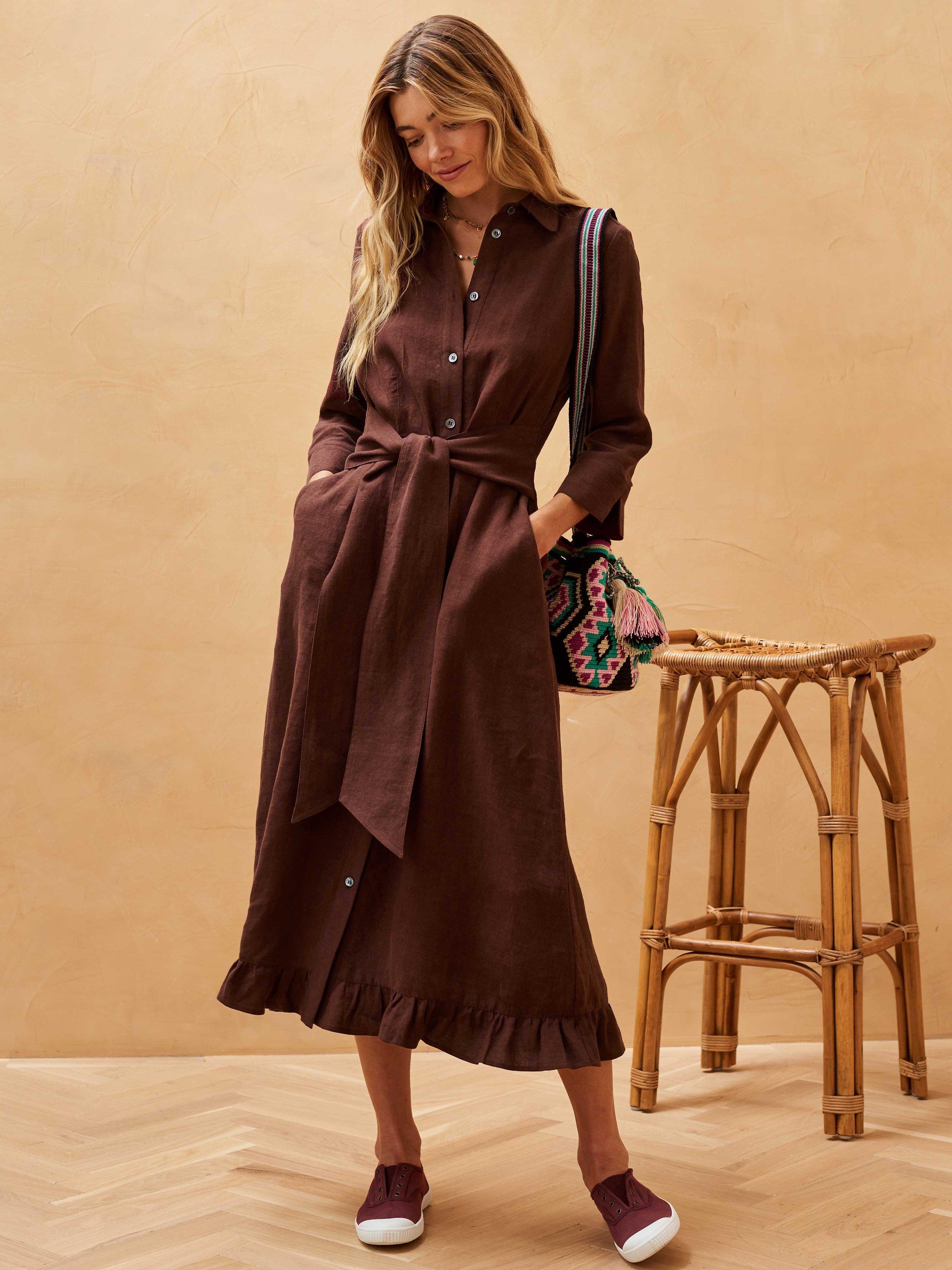 Brora Linen Midi Shirt Dress Chocolate Very well made.